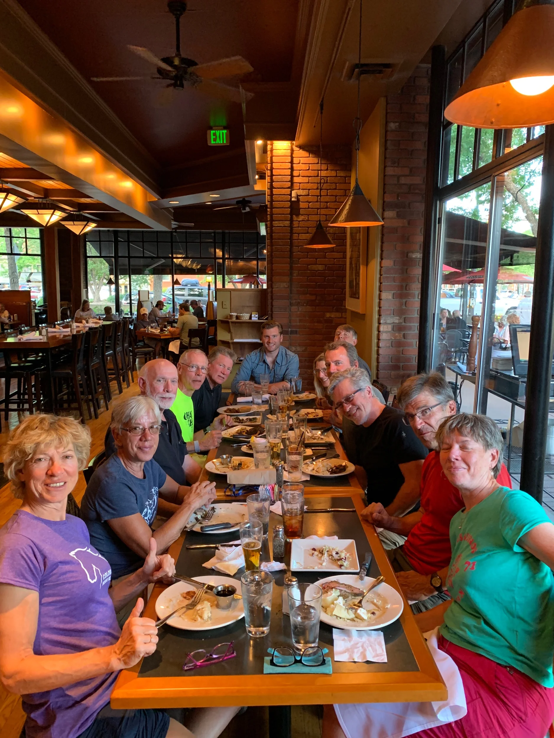 A few words about the Solarium Hostel we are staying at this evening: They are clearly bike focused, just like the town, with plenty of biking amenities, but there is also a court yard with amazing plants and a “marijuana approved” tepee in the backyard- only in Colorado, I guess. Frank Moritz, the person who has put together the routes we have been following, met us in town and bought dinner for the group. That was a very nice gesture.