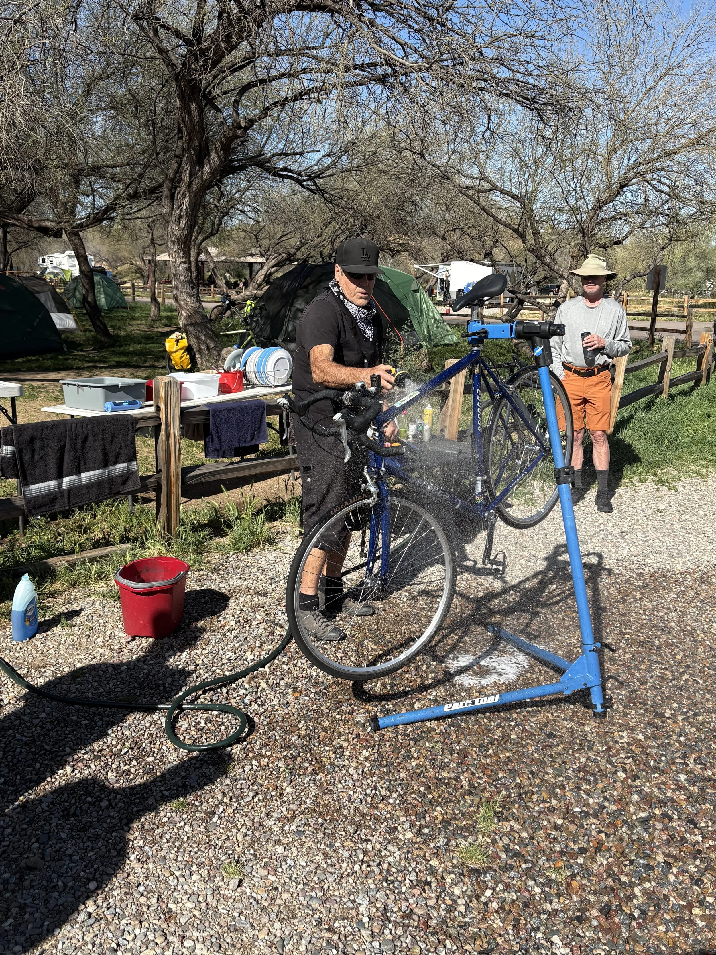 Lance showing the art of washing a bike. So much better than how I did it.