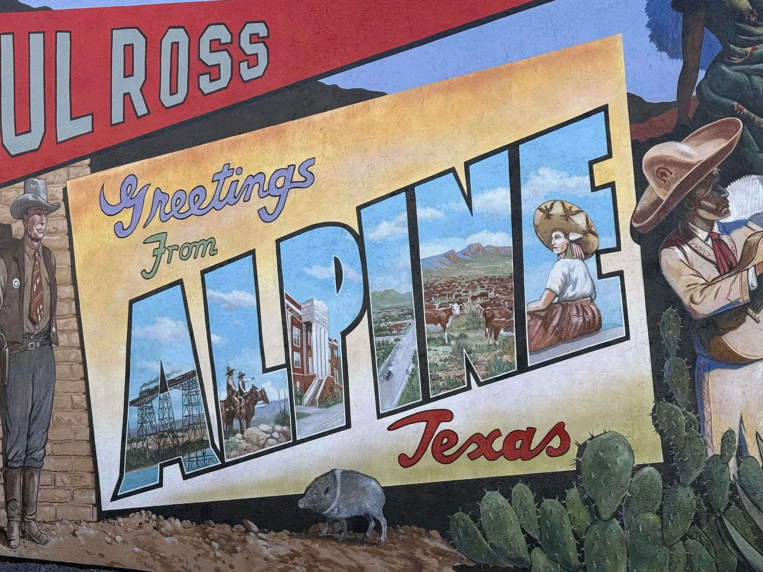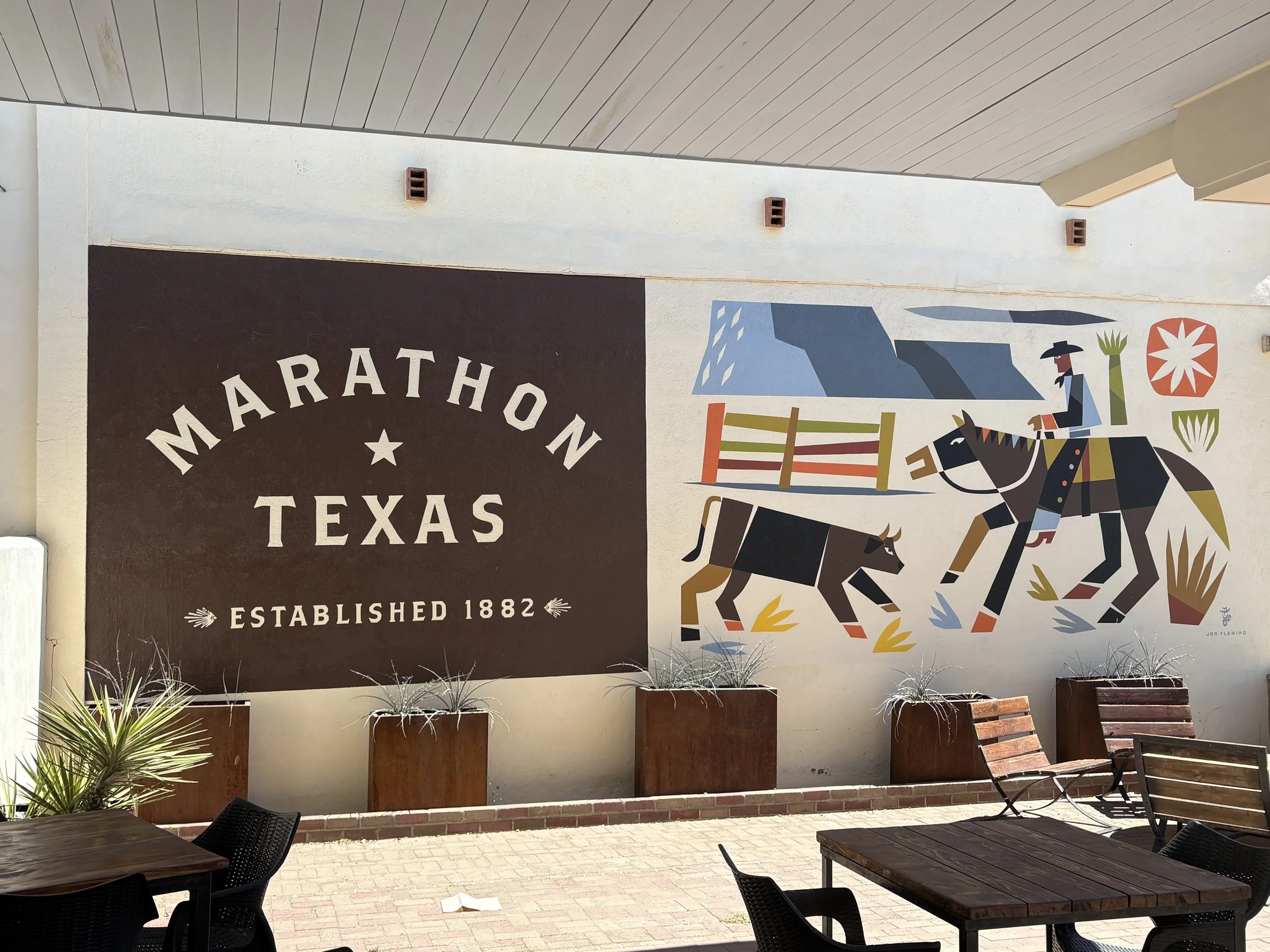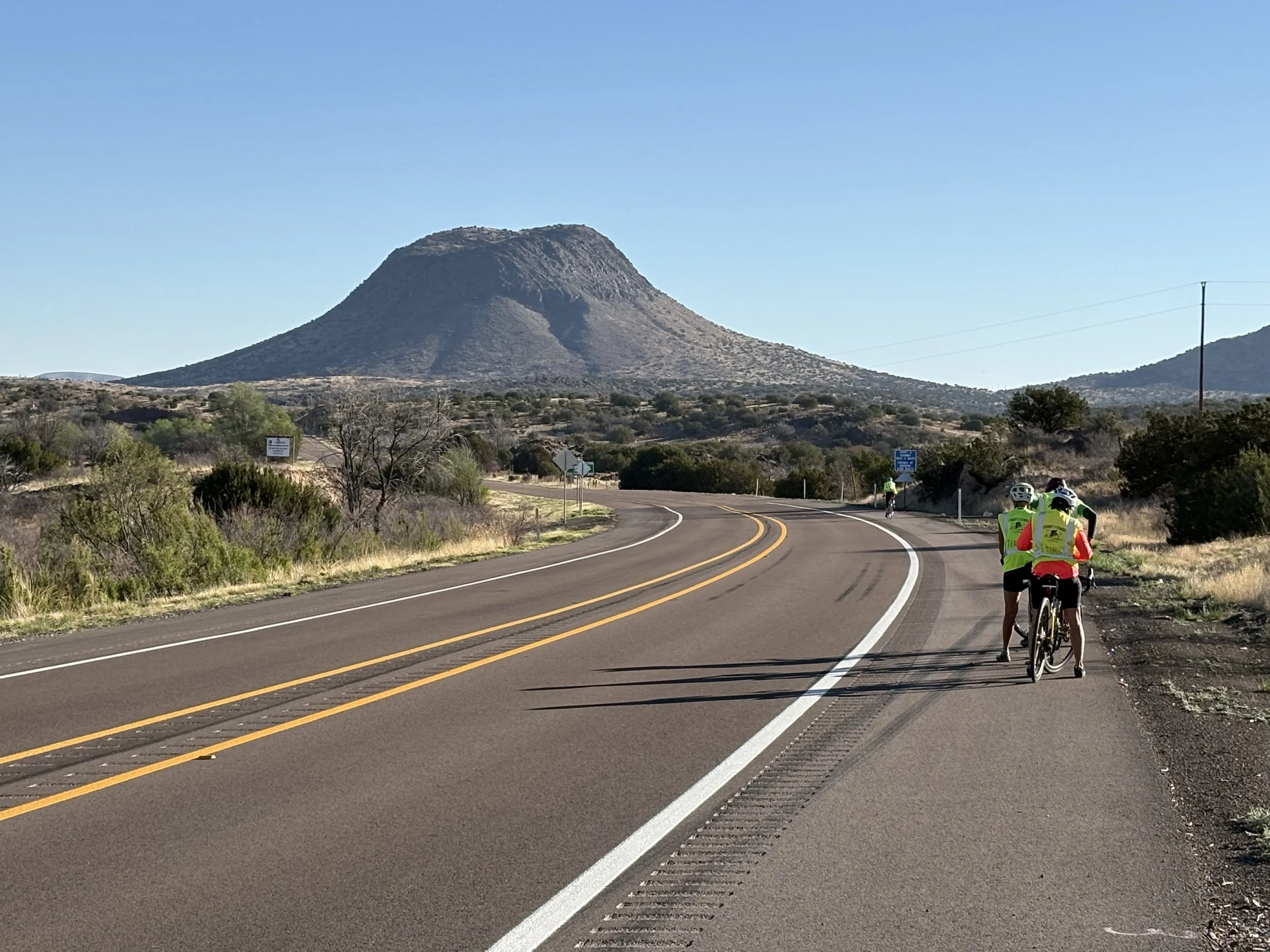 Pretty riding day, scenery changed to grassland with closer mountains and winding roads. While “only 55 miles”, a good headwind for 20 miles challenged us. Getting good pace line practice. Nice snack in Alpine and lunch in Marathon. Tomorrow is a non riding day, and we’re driving to Big Bend National Park. I am looking forward to that!