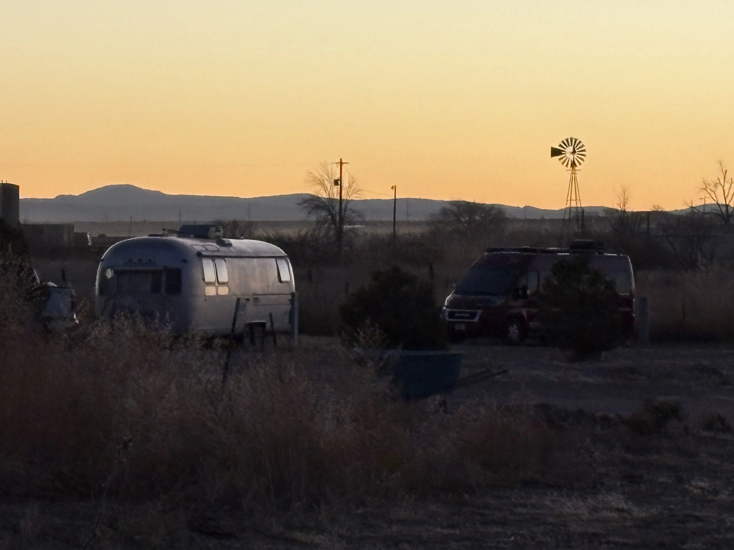 Sunrise this morning, I thought the airstream camper and wind vane represent Texas.