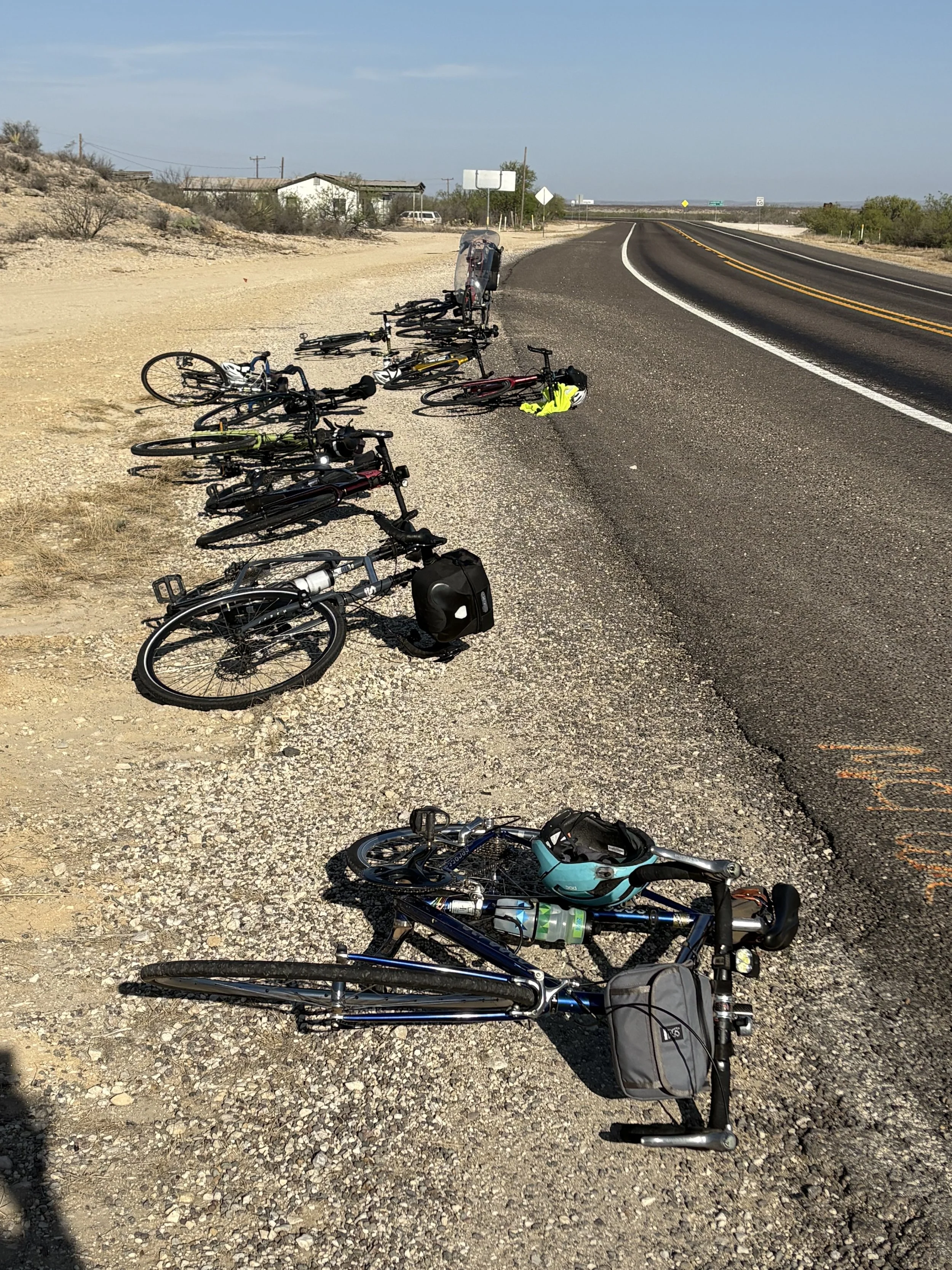 Significant mileage day compounded by strong headwinds. We ended up pedaling for 8 1/2 hrs. Highlights today included the Judge Roy Bean Museum, the Pecos River, and many cool views and rock formations. The group is tired tonight.
