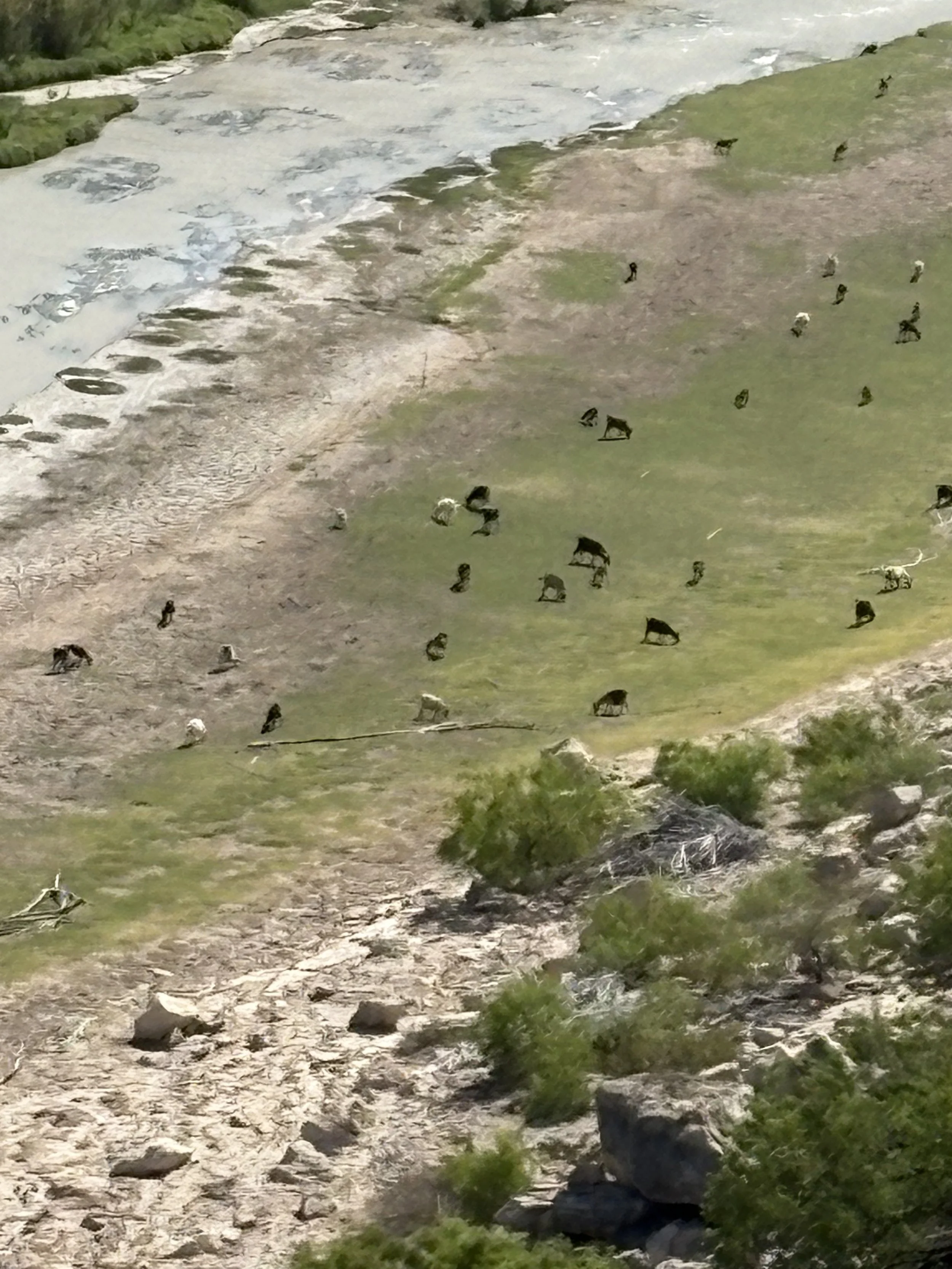 Riverbed of Pecos River, covered by sheep