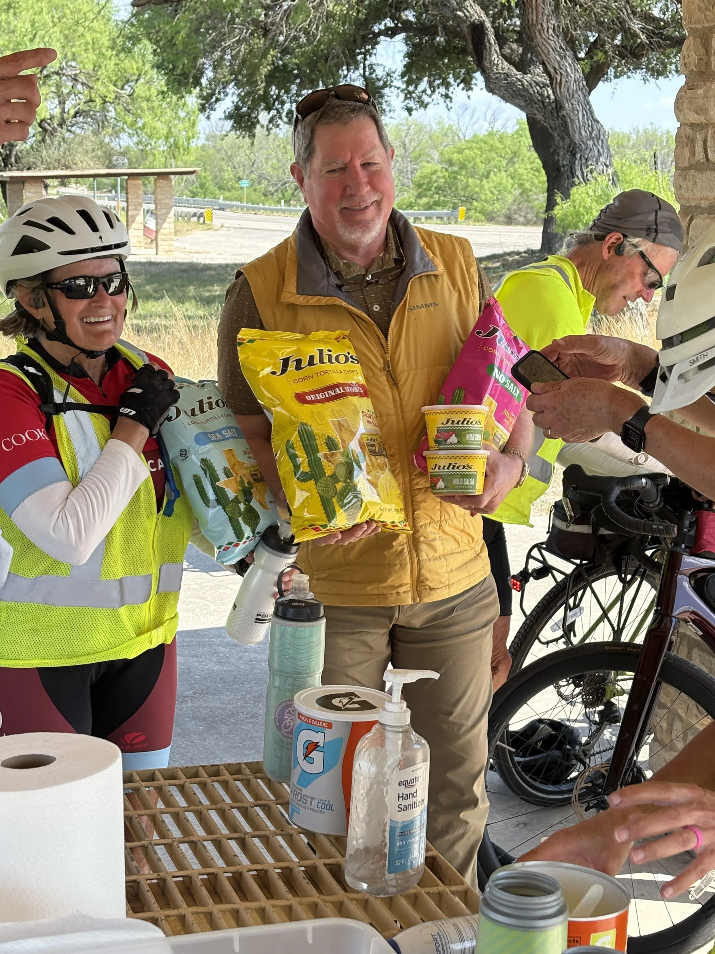 Merland Albert donates chips and salsa at mile 65 SAG stop.