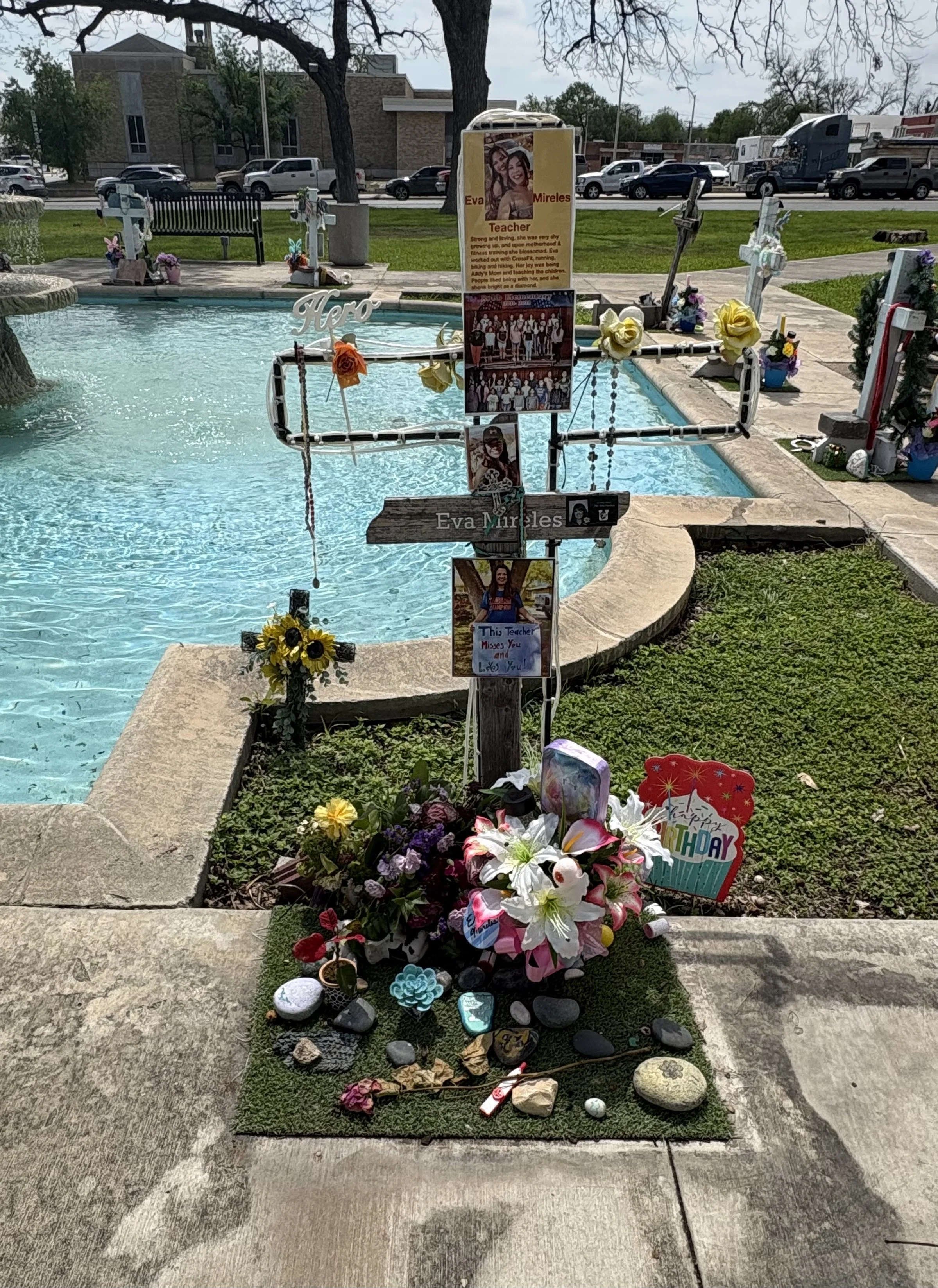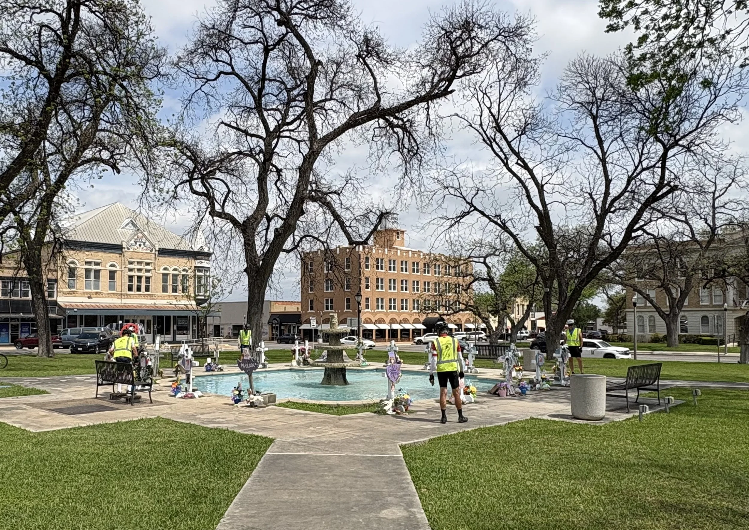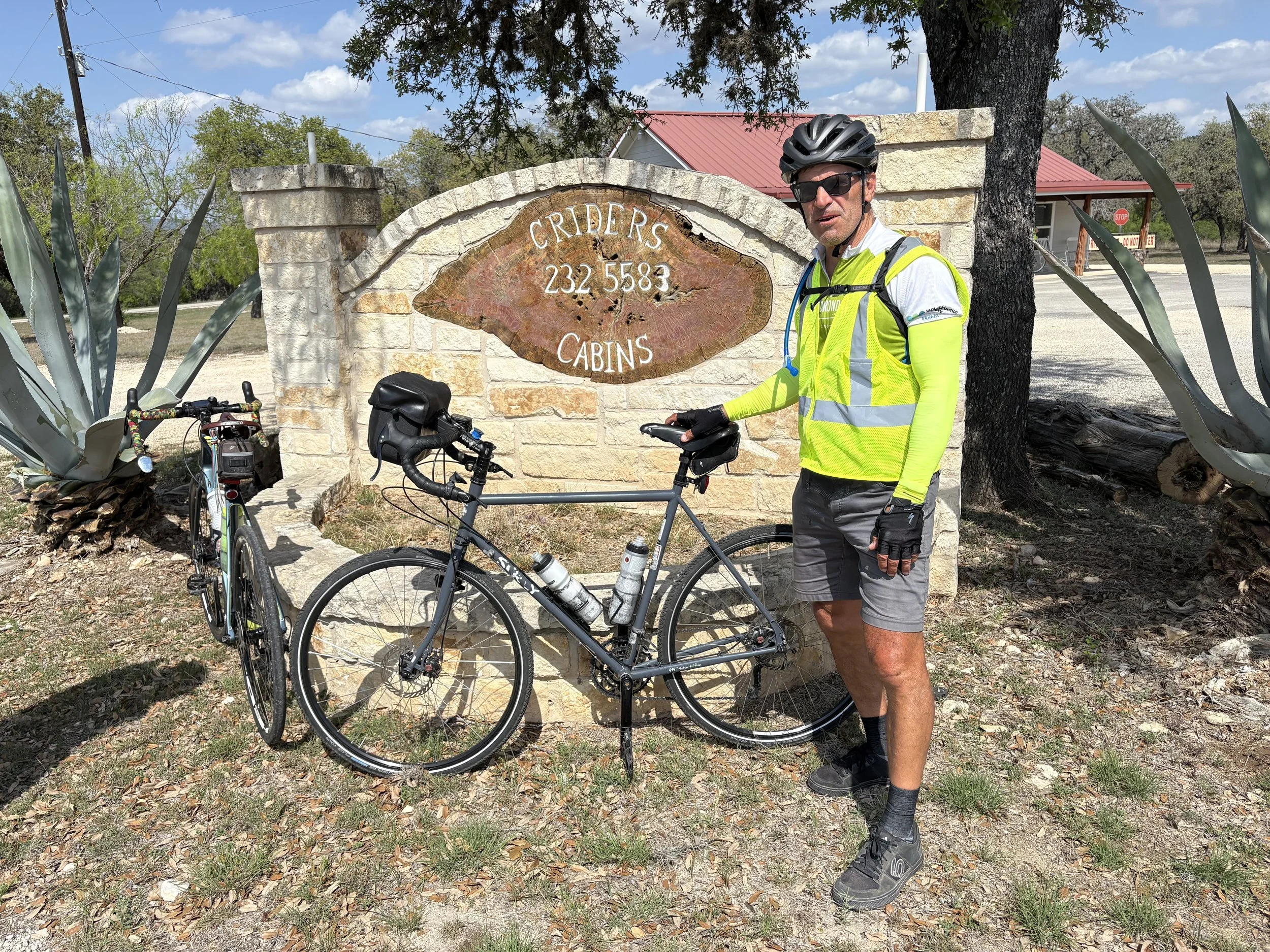 Exciting day of riding as we made it the start of Texas Hill Country. Leaving at 8:30, we made our way east in a moderate headwind to Uvalde. Lunch at Ophelia’s before visiting the very touching and sad Memorial to the Evalde massacre in 2022. From Uvalde, we headed north, gaining a tailwind with the change in direction. Hooray! Our destination is the