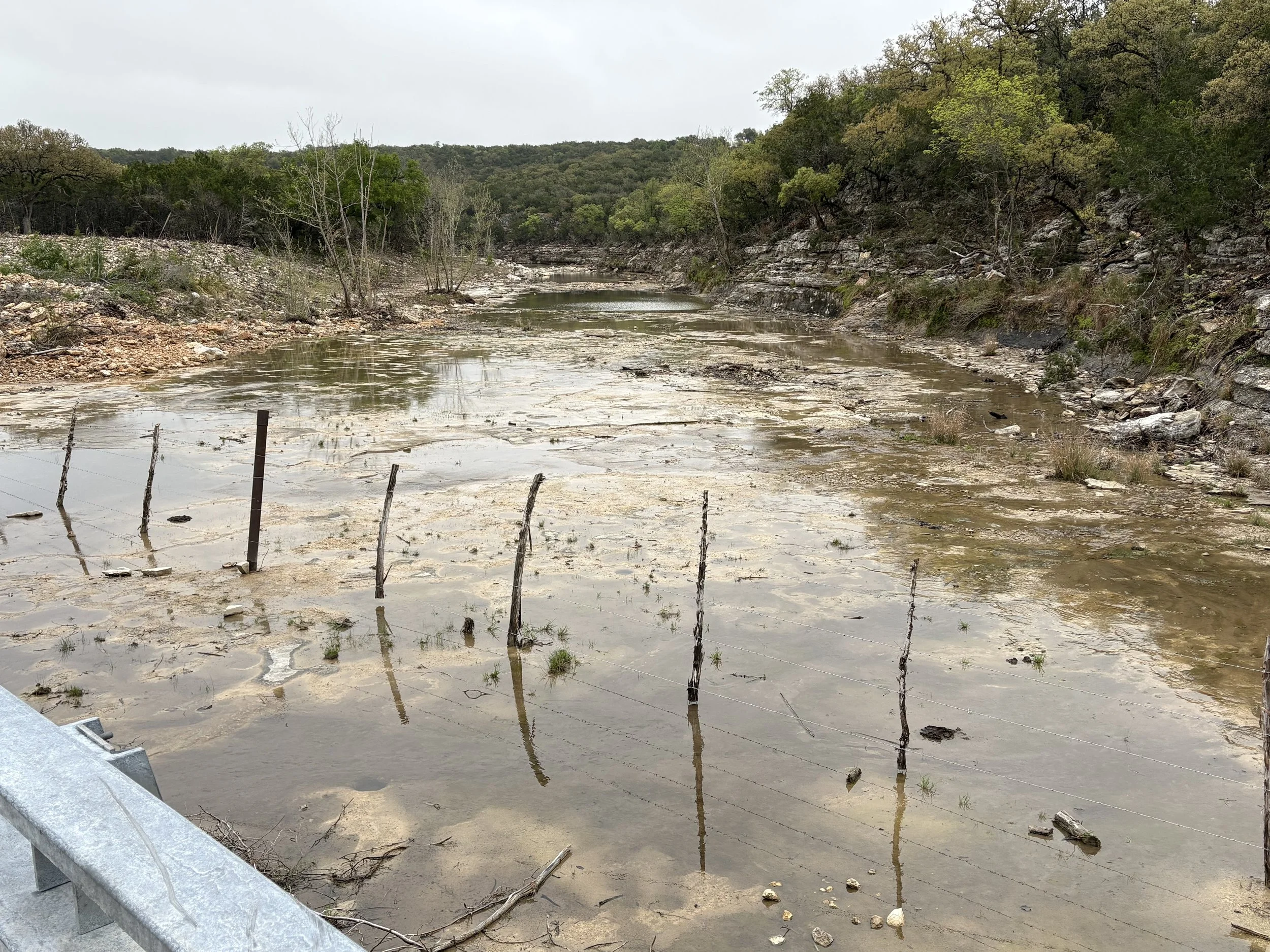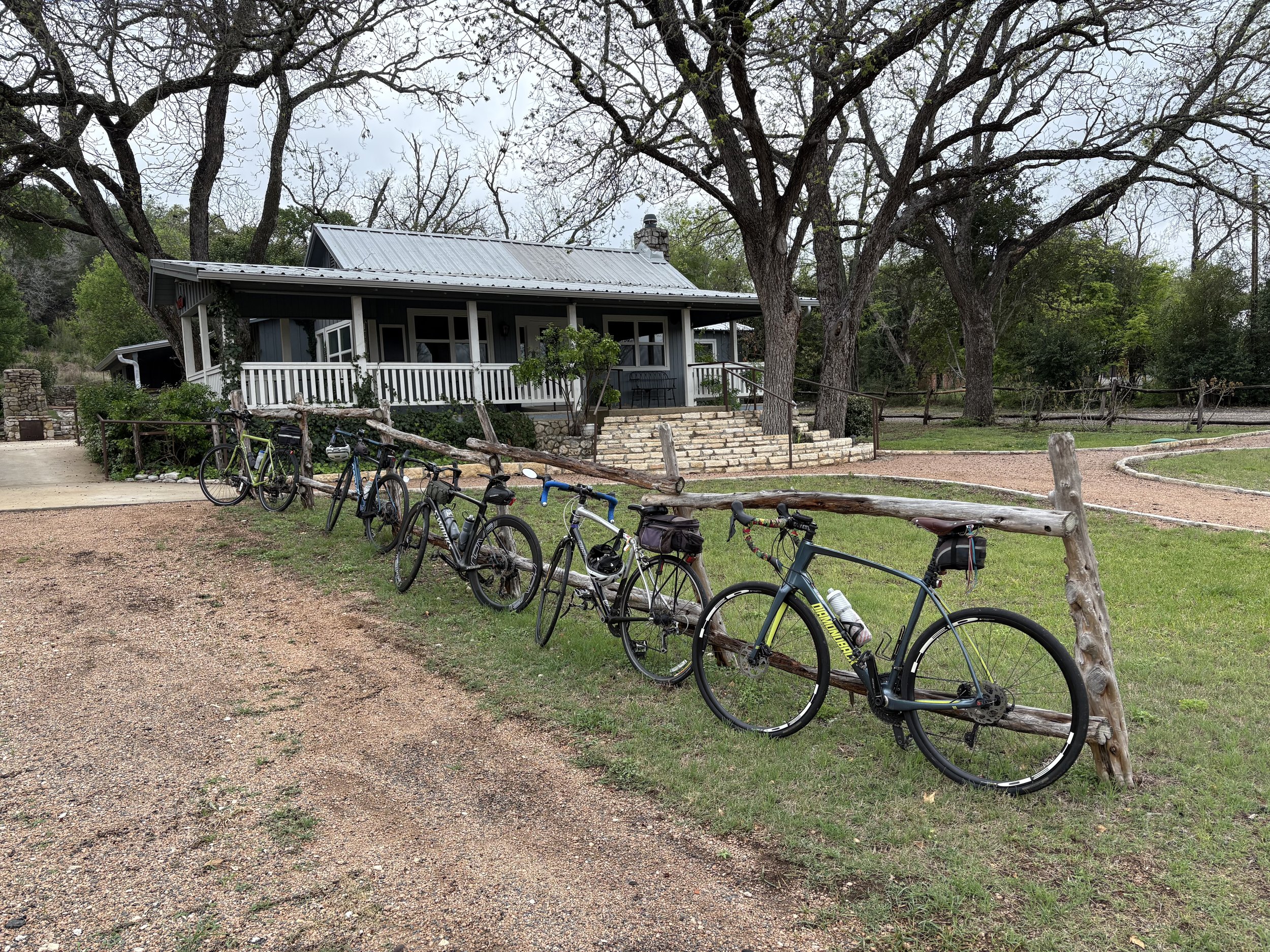 Another solemn day…woke up to thunder & lightning. Steady light rain for first 25 miles, but riding on winding roads with little traffic was a nice change. We followed the Guadalupe River along Route 39, and saw firsthand the devastation from last July’s flooding. Lunch at LJ Vineyards in Hunt, Texas about 4 miles from the tragedy at the Mystic Campground, where 27 campers and 2 counselors died. Today’s riding was very nice with rolling hills and lots of pretty scenery. Camping tonight at Kerrville State Park.