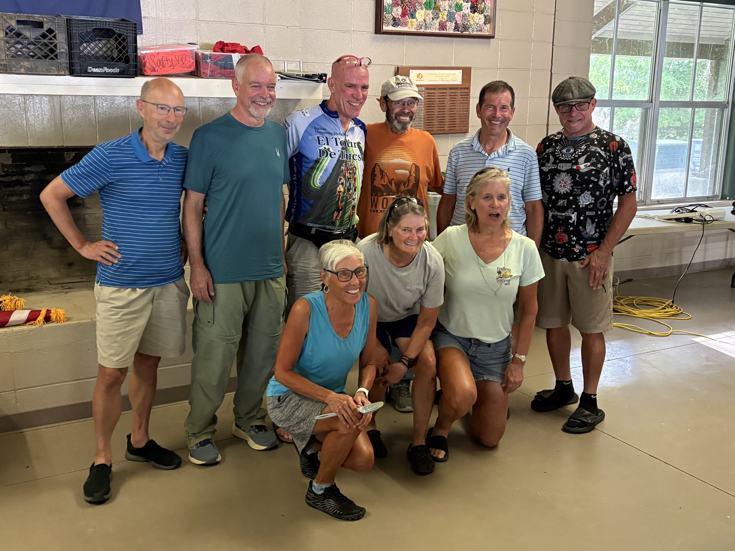 The riders in the “66 club”. Lori joined them yesterday. (Bill, Joe, John, Steve, Tim, Chuck, Terri, Lori, and Lisa)