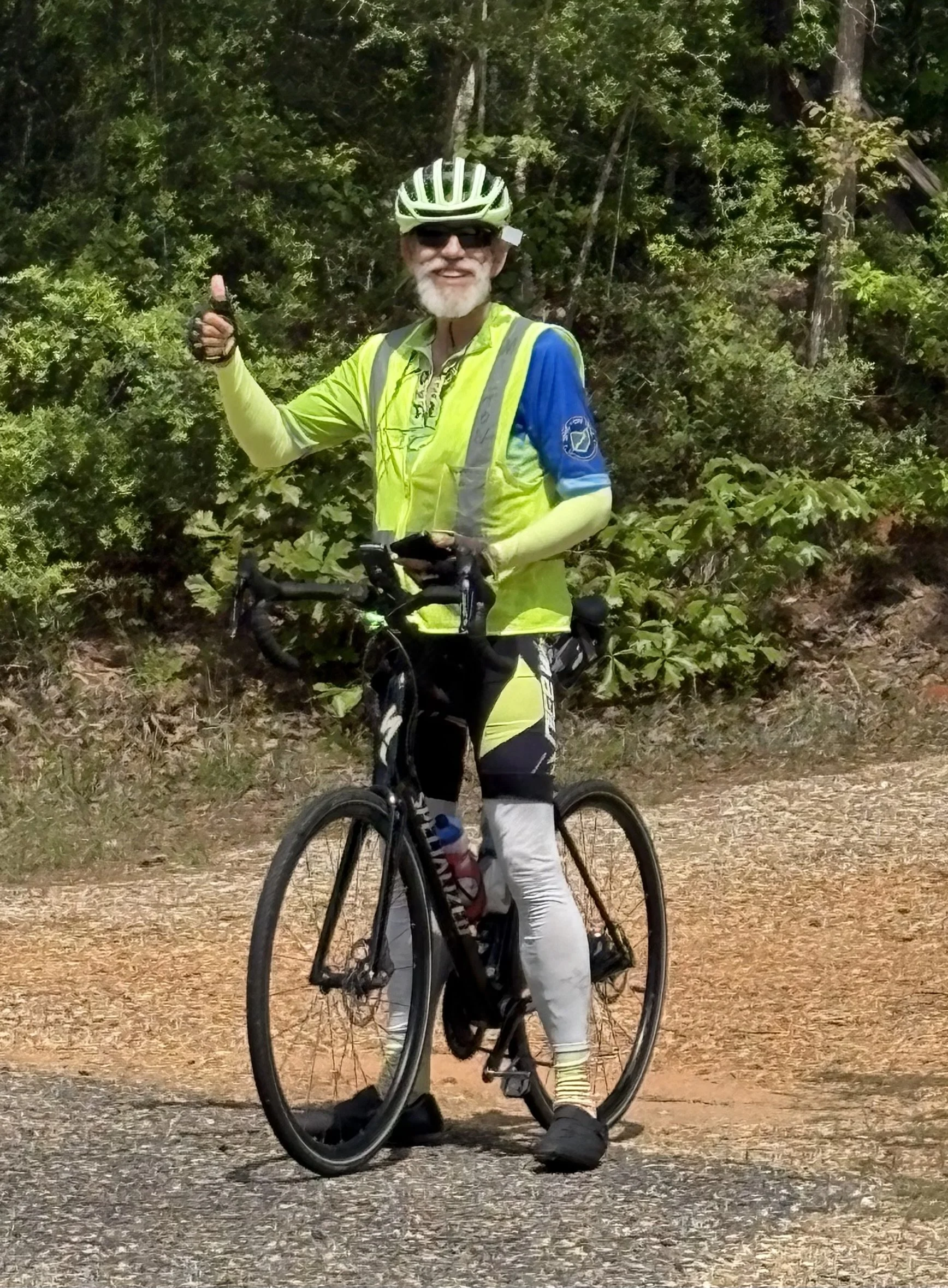 Team stops to visit with Earl, a Timberline friend for many years