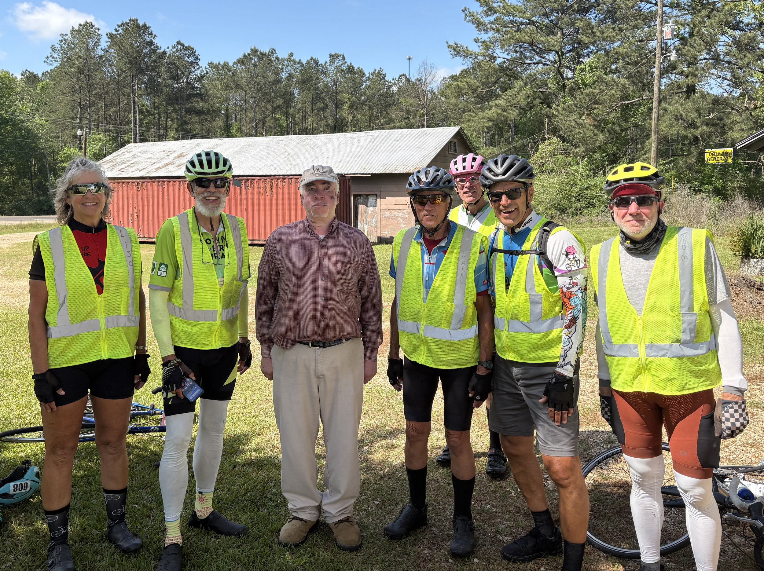 Beautiful riding day, nice temperatures, smooth roads, cooling breeze, pretty scenery. Great barbecue lunch in Kentwood. Special stop to visit with Earl, a longtime friend of Timberline who has shared his property with riders for years. Tonight we’re staying at the First Baptist Church in Kentwood.