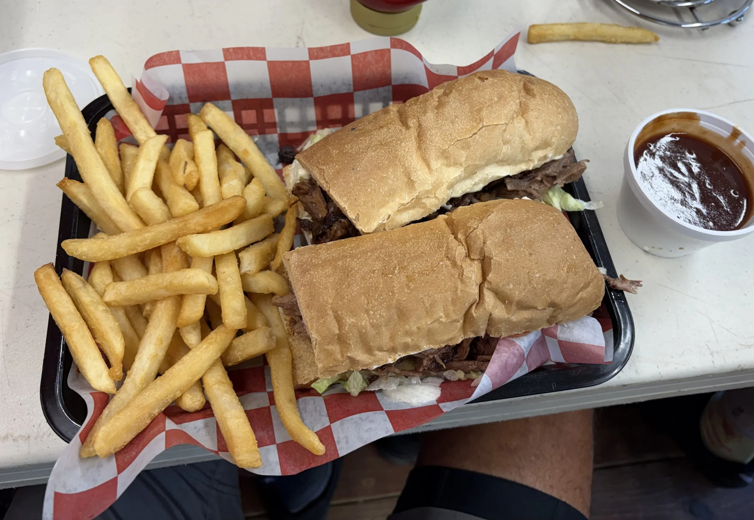 Brisket Po’boy sandwich with BBQ sauce