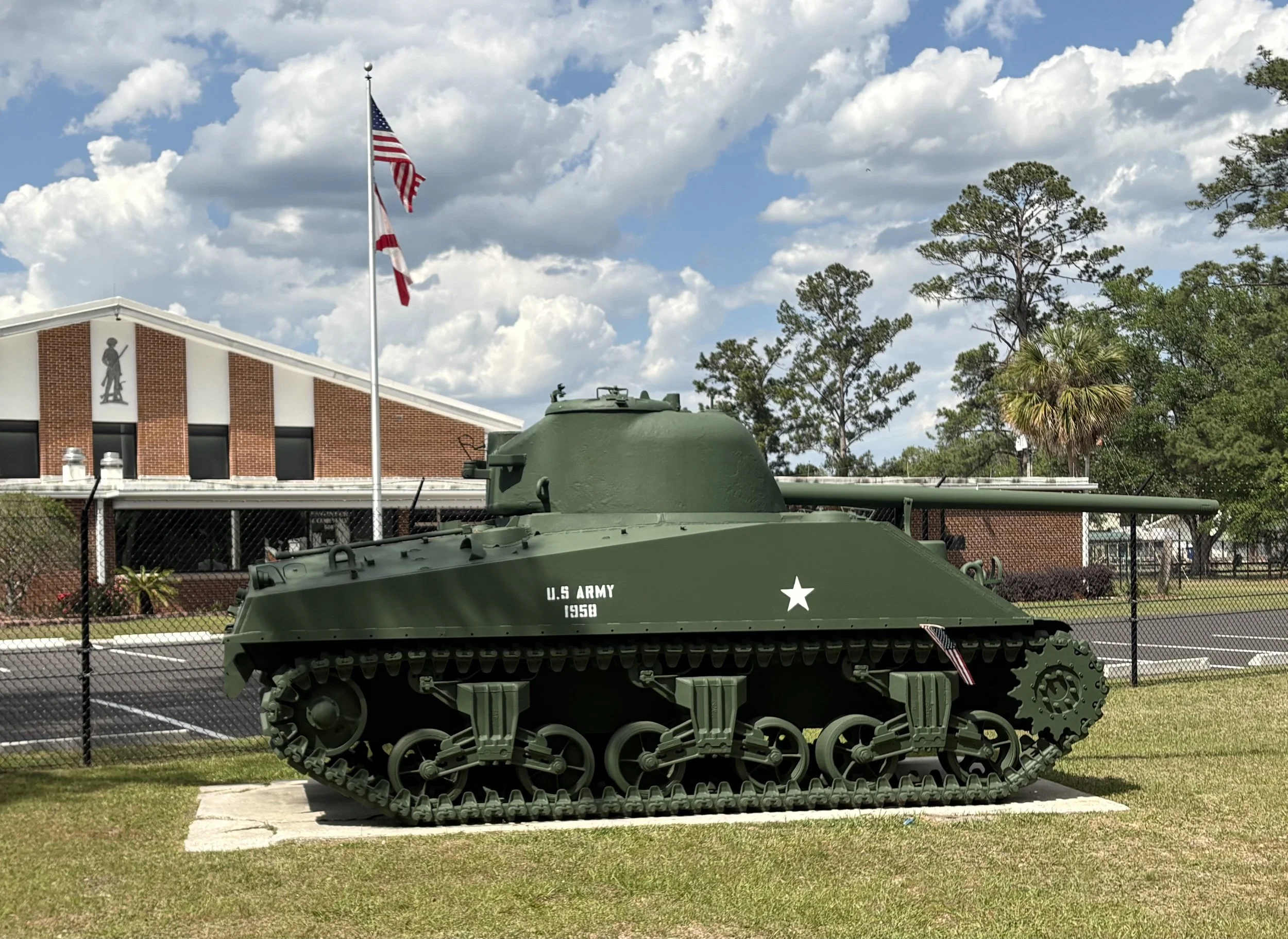 A fun day, more scenic than yesterday although we rode on 90 East for most of the day. Nice post breakfast stop at Tupelo’s Bakery, mile 19, for quiche & strawberry scone. Visited Ray Charles’ hometown of Greenville, lunch at Popeyes in Madison. Staying at the Suwanee County Fairgrounds, our last “indoor” camping of the trip.