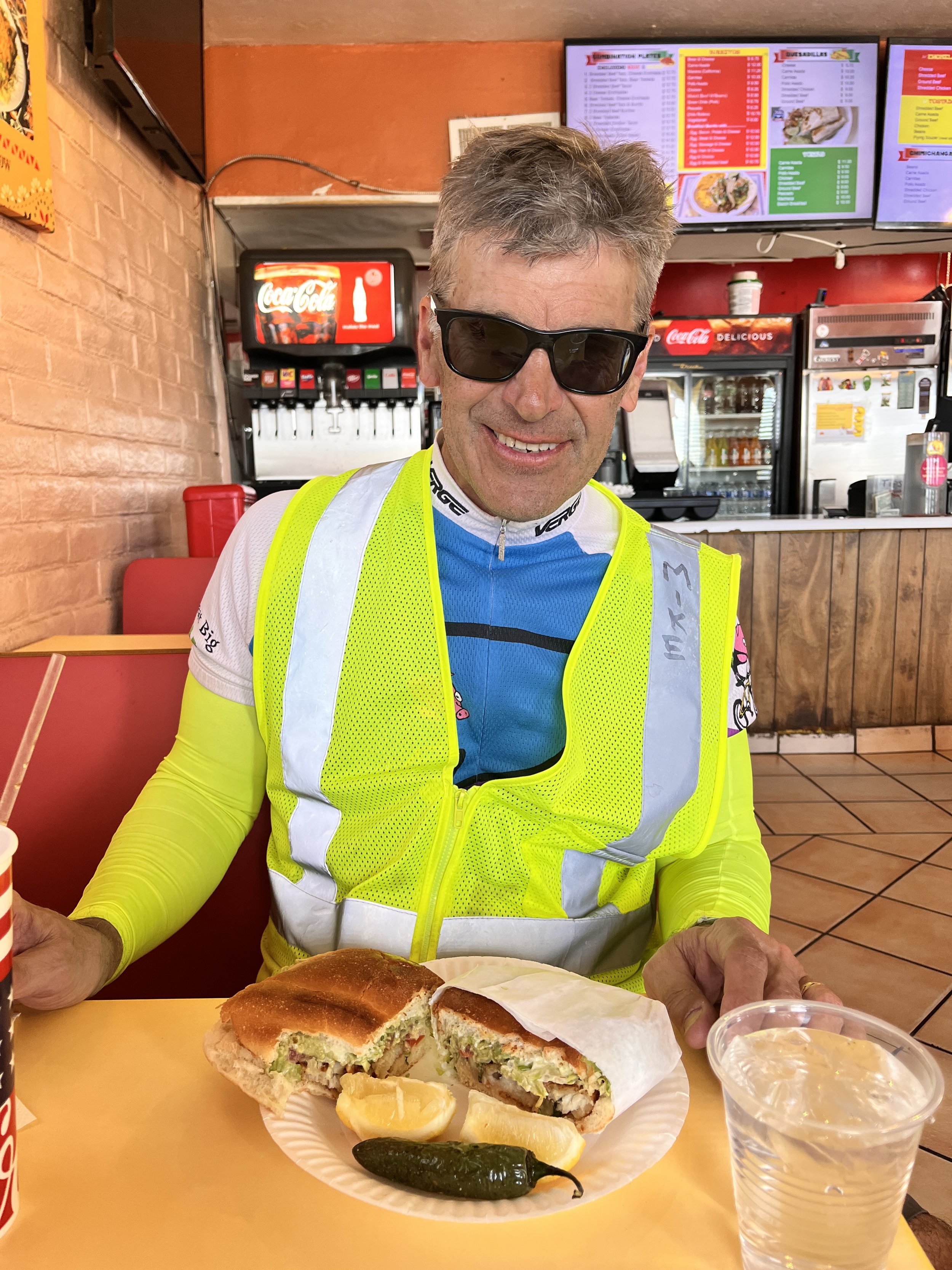 Fish Tortas with a big hot pepper. Very tasty. Who gets tilapia in the middle of the desert?