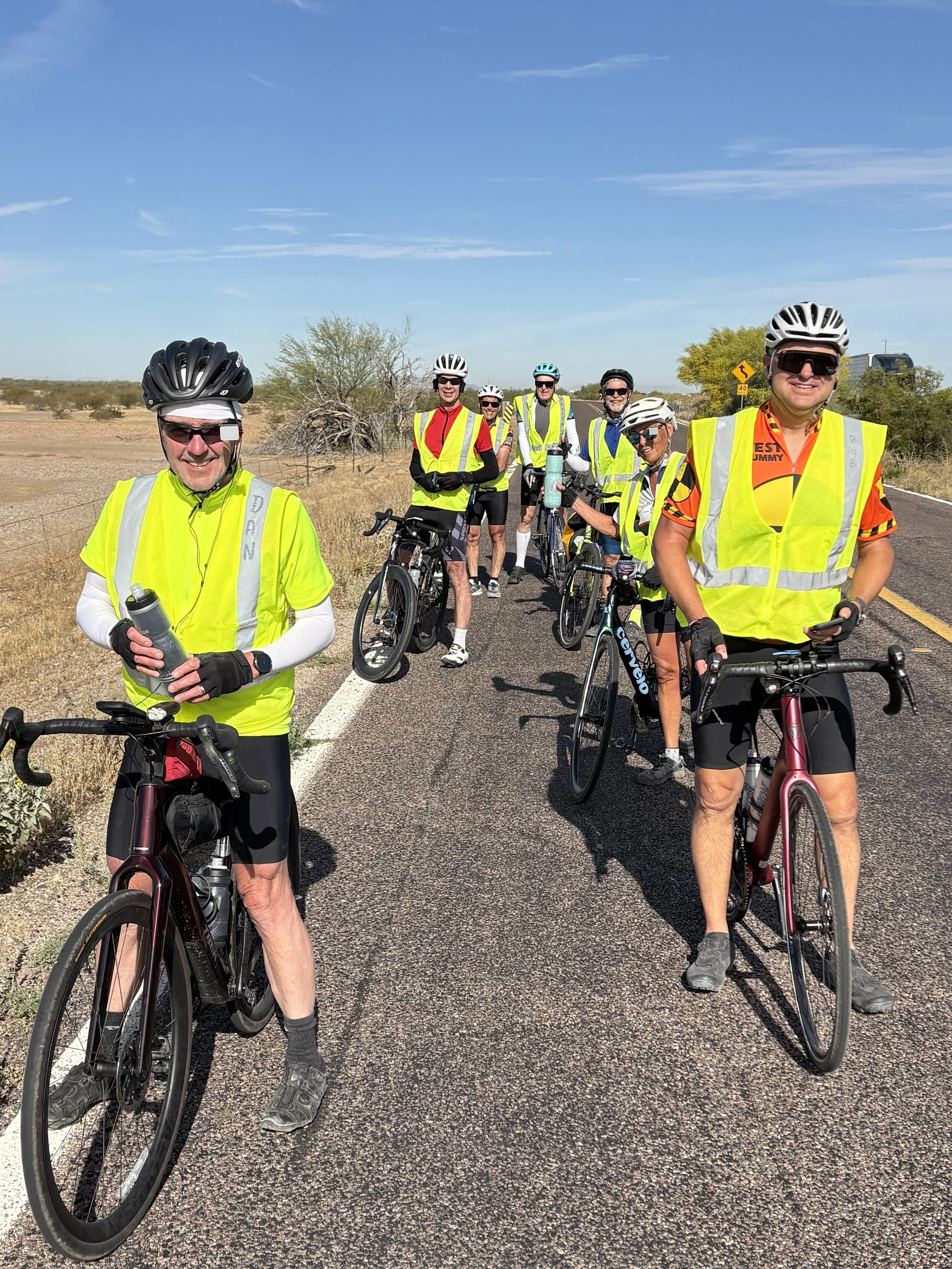 Today’s riding group…Dan, Bob, Terri, Paul, Joe, Tim, David, and me.
