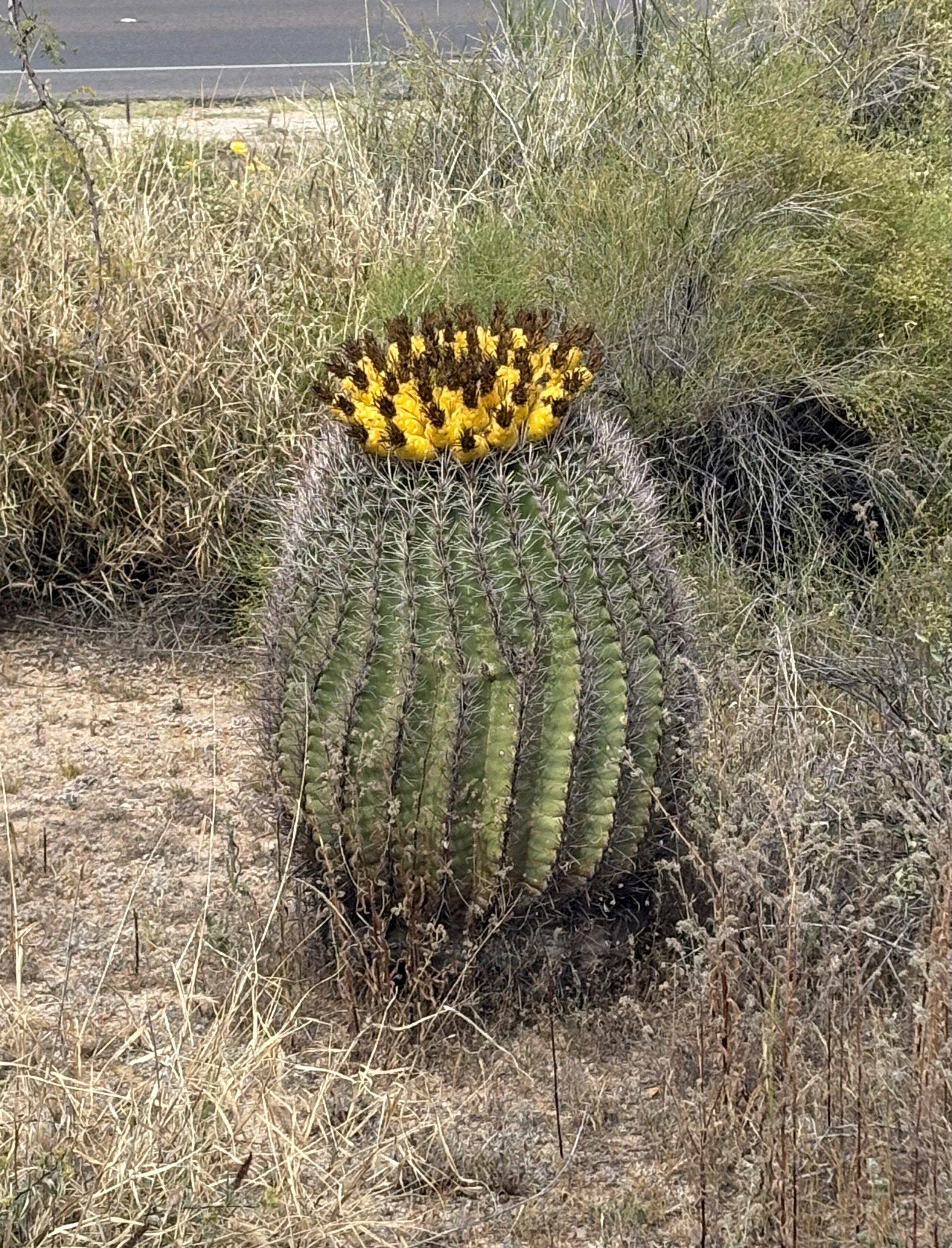 Fishhook Barrel cactus in bloom.
