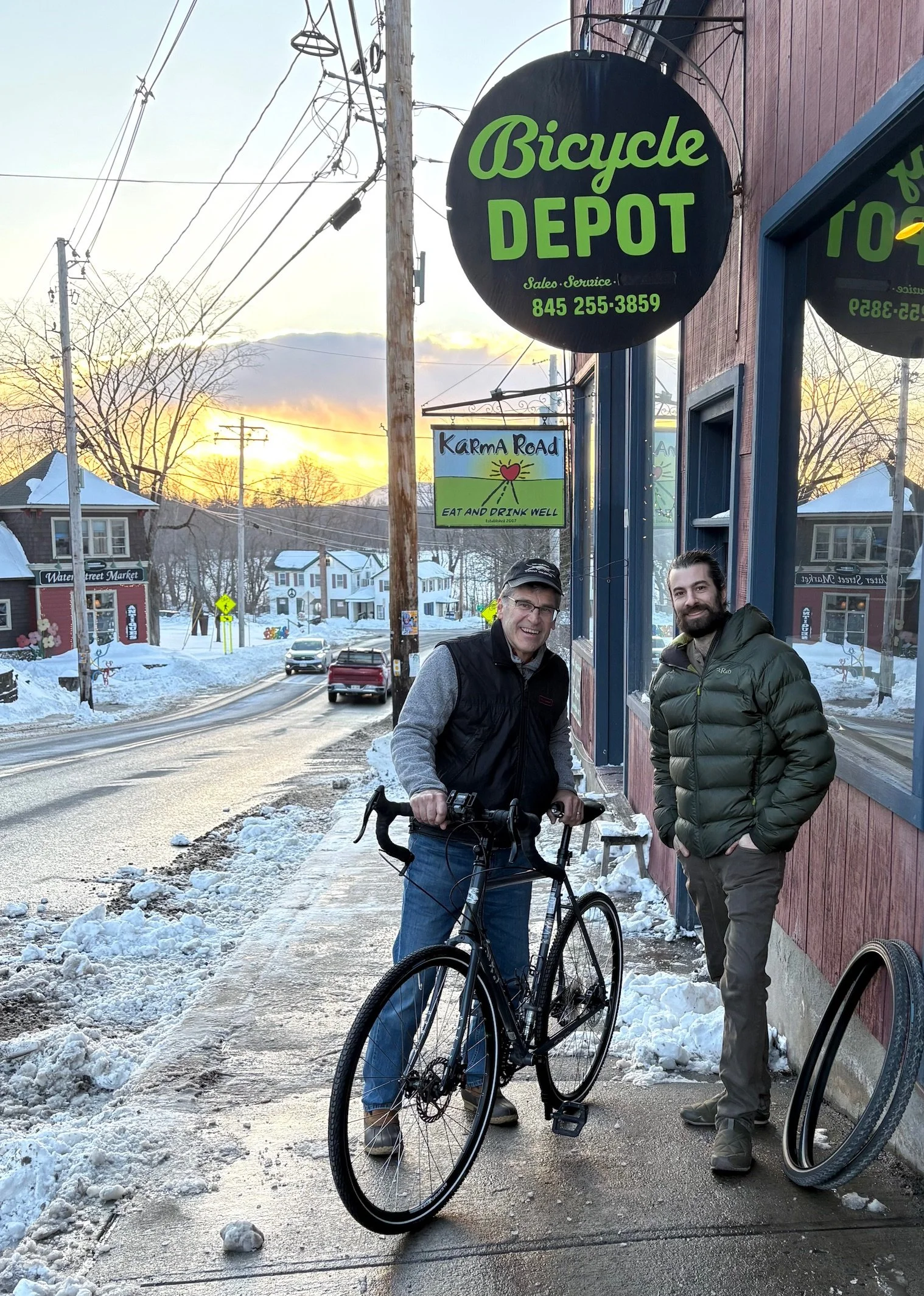 In preparation for this ride, I had my bike “tuned” at Bike Depot in New Paltz, NY. They did a great job, repacking the bearings, replacing all the cables, changing brake pads, installing new tires and handlebar tape, and performed other maintenance items. Here’s Lee, from Bike Depot, who did the work.